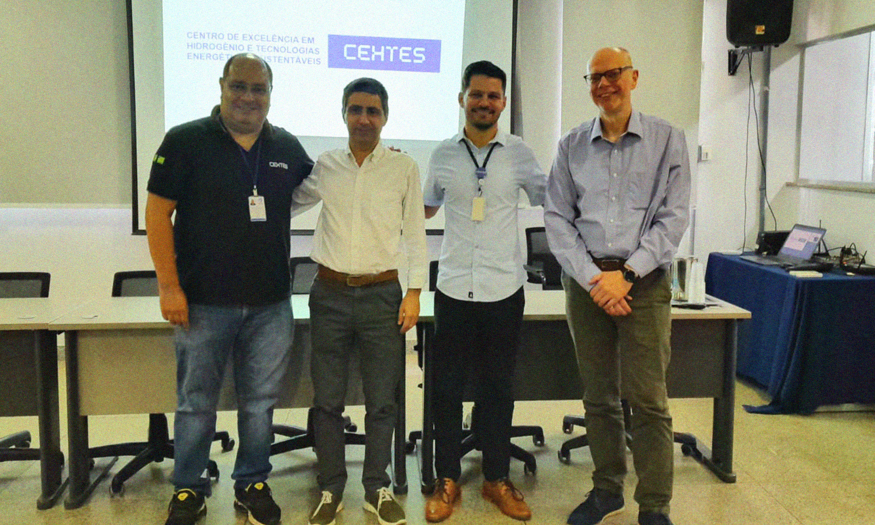 Além das palestras dos convidados, o professor Geyverson realizou uma apresentação sobre o CEHTES. Em sua exposição, ele destacou que o objetivo central do centro é a pesquisa e o desenvolvimento de ponta nas áreas de hidrogênio e energias renováveis, visando posicionar o estado de Goiás e a região Centro-Oeste no cenário global da transição energética por meio da produção de combustíveis limpos.